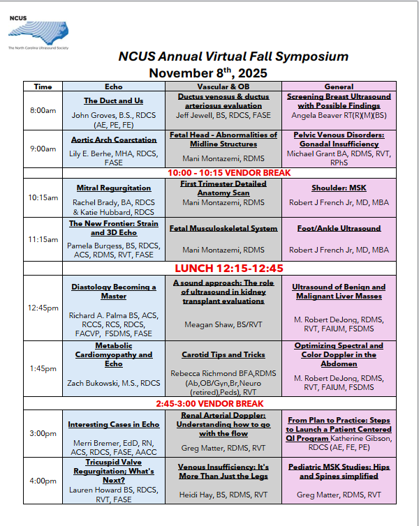 Symposium attendees that purchase a full day registration will receive a discount code for 50% off their 2026 NCUS membership fee for Active Sonographer or Affiliate memberships.